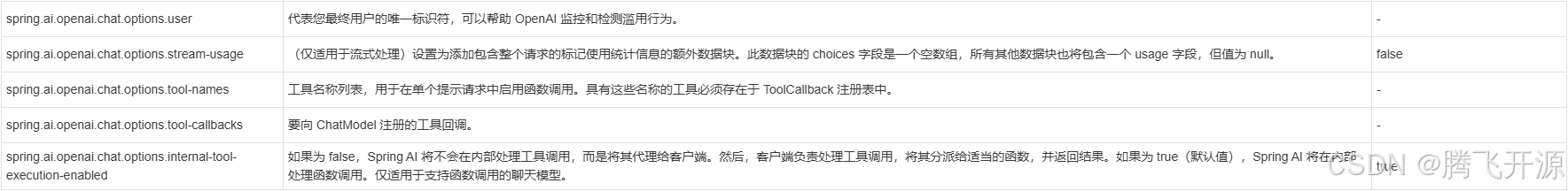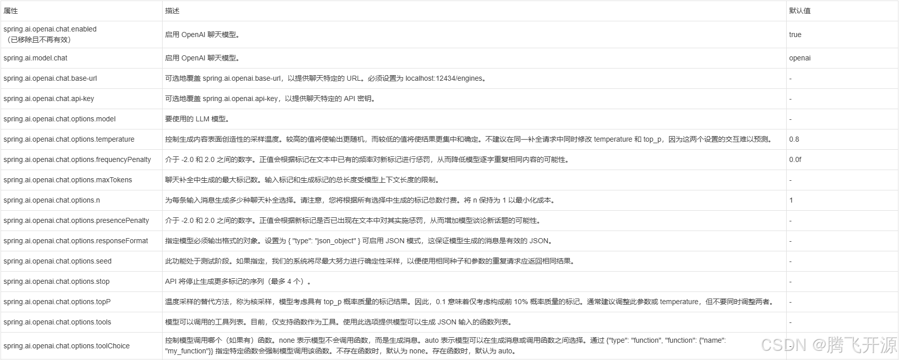 前缀 spring.ai.openai.chat 是用于配置 OpenAI 聊天模型实现的属性前缀。