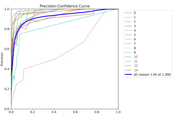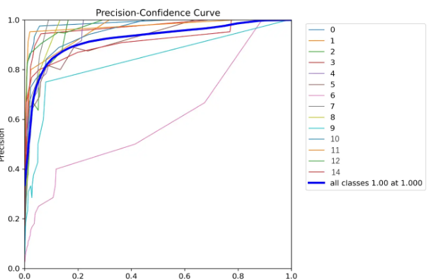 看上图第一项,很明显有一个问题。那就是第13分类的样本数太少。这也导致比如上面的P曲线、R曲线没有第13分类的信息(没注意可以滑上去再看看)。这是因为样本过少,被淹没、忽略了。