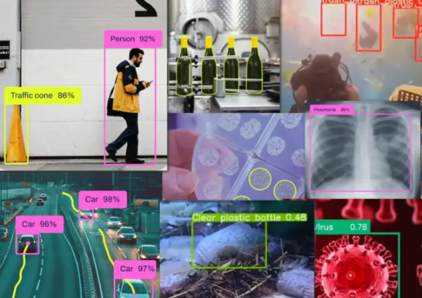 我们看下面的图,它不但框出了物体。而且标注出了这个框里是人,那个框里是车,哪个是细菌,哪个是垃圾。
