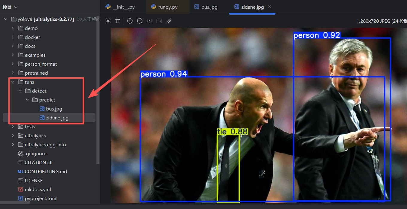 yolo task=detect mode=predict model=pretrained/yolov8l.pt source=ultralytics/assets device=CPU