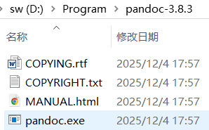 加入系统环境变量PATH即可,检查pandoc --version是否可用。