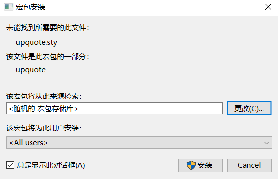 参考LaTeX安装与配置,下载得到basic-miktex-24.1-x64.exe,双击安装,自动追加D:\Program\MiKTeX\miktex\bin\x64\到PATH系统变量。