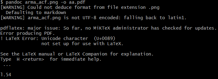 重试pandoc arma_acf.png --pdf-engine=xelatex -o aa.pdf,也是安装各种宏包,最后还是失败。