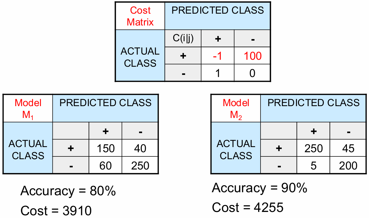 我们还可以用成本去比较不同模型。成本考虑了错误分类的成本,提供了一个更全面的模型性能评估指标,特别是在错误分类成本不同的场景中。。计算公式为: