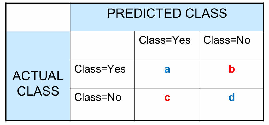 Accuracy = a + d N = a + d a + b + c + d \text{Accuracy} = \frac{a+d}{N} = \frac{a+d}{a+b+c+d} Accuracy=Na+d=a+b+c+da+d