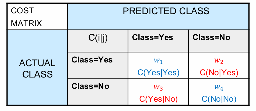 Classification Cost = w 1 a + w 2 b + w 3 c + w 4 d \text{Classification Cost} = w_1a + w_2b + w_3c + w_4d Classification Cost=w1a+w2b+w3c+w4d