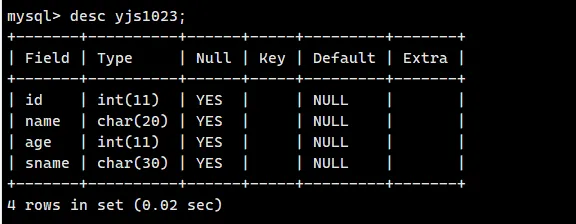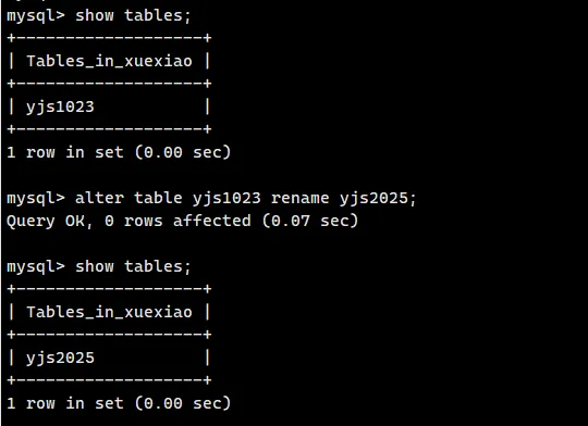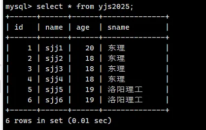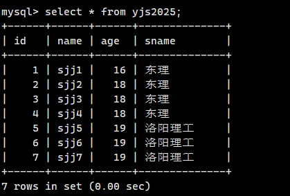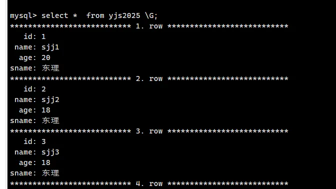 select * from yjs2025 \G;