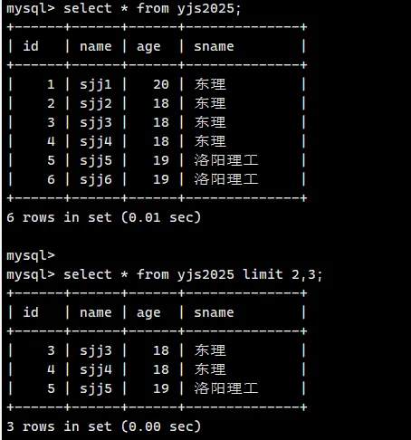select * from yjs2025 limit 2,3;