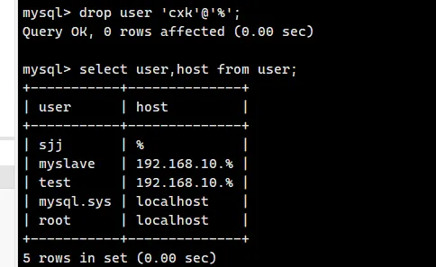 drop user 'cxk'@'%';