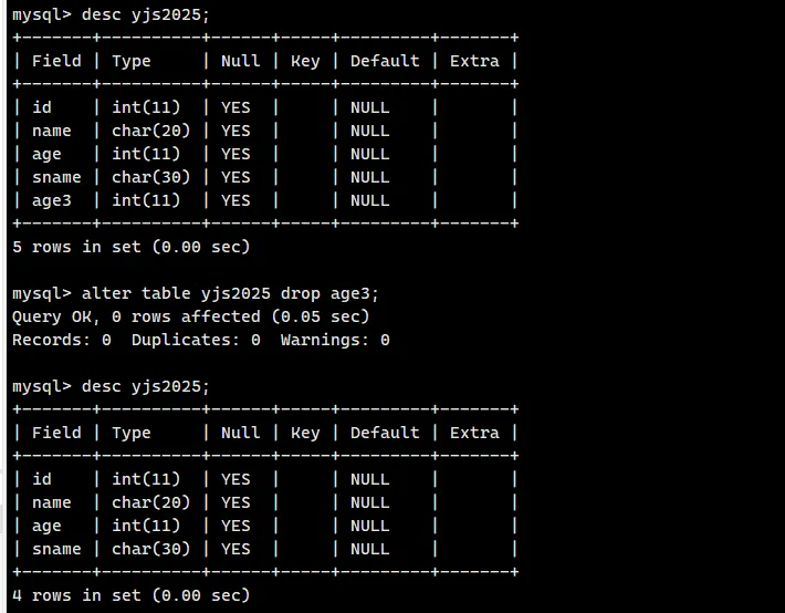 alter table yjs2025 drop age3;