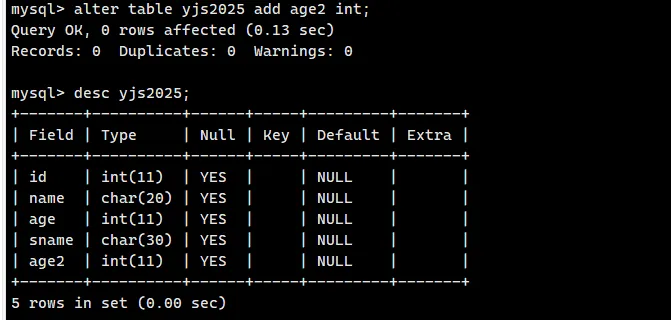 alter table yjs2025 add age2 int;