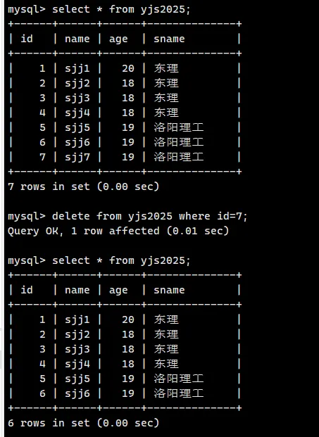 delete from yjs2025 where id=7;