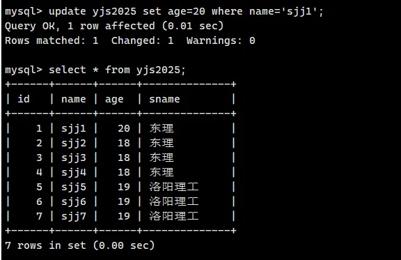 update yjs2025 set age=20 where name='sjj1';