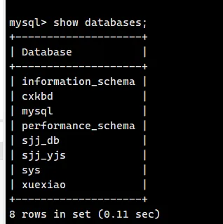 用途:显示当前 MySQL 服务器上所有数据库列表。