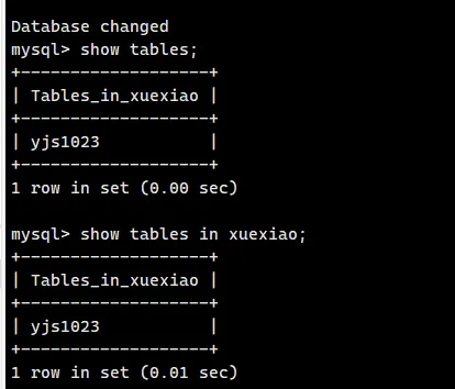 show tables in 数据库名称;
