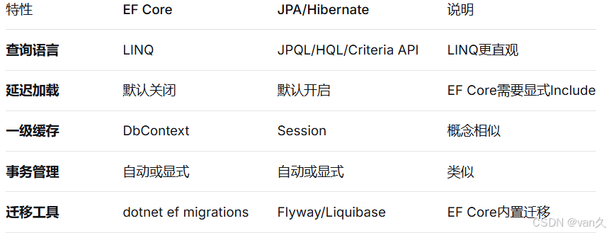 EF Core 和 Java JPA/Hibernate 对比