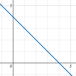 为了简化描述和计算,以 N c a r r i e r = 5 N_{carrier}=5 Ncarrier=5为例(LTE实际最小RB为6,1.4M带宽),我们分别以 N s t a r t N_{start} Nstart为x轴, N R B N_{RB} NRB为y轴在笛卡尔坐标系中画出来符合要求的区域,y=4-x的图像和坐标轴正半轴围成的等腰直角三角形就是我们关心的范围。这个范围内坐标由整数组成的点就是可能的RB分配: (0,1),(1,1),(2,1)等等。