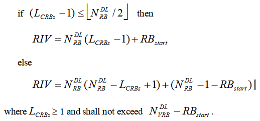 至此,我们已经明白RIV为什么可以节省比特了,至于具体的编码细节:用哪个数字来表示哪种RB分配方法,参阅3GPP给出的公式即可。