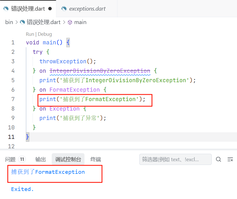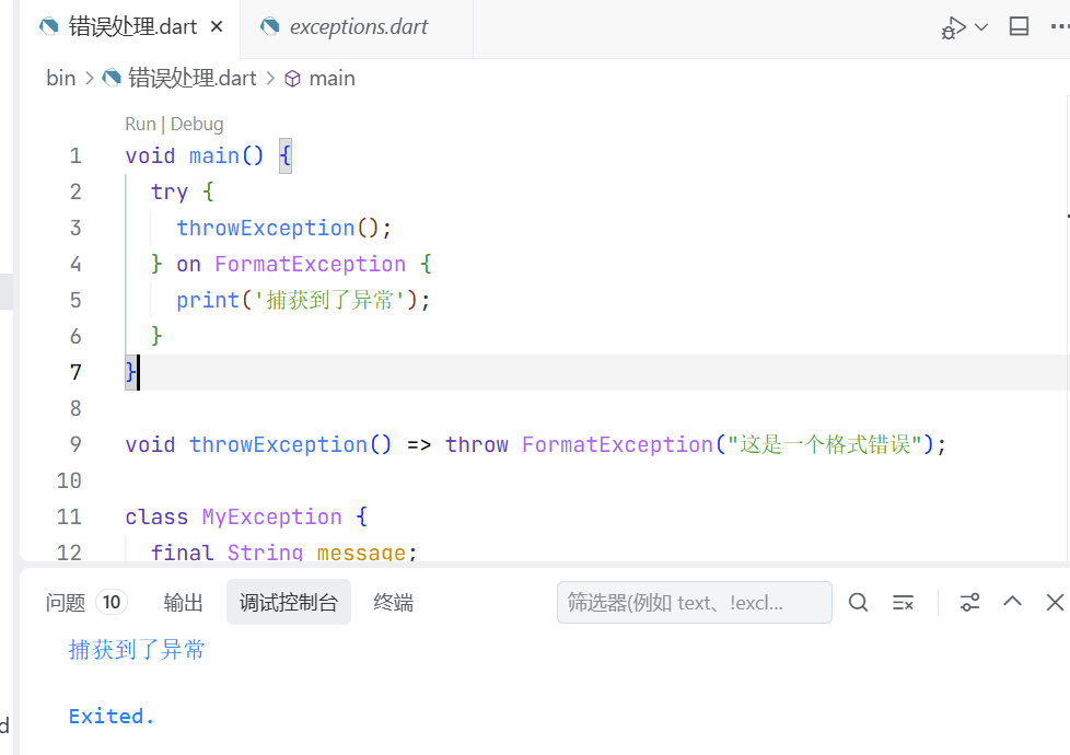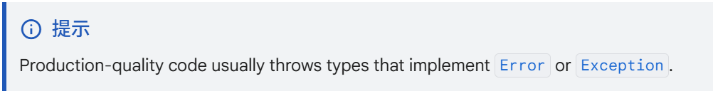 Dart提供了异常和错误类型,以及许多预定义的子类型。当然,您可以定义自己的异常。然而,Dart程序可以抛出任何非空对象作为异常,而不仅仅是Exception和Error对象。