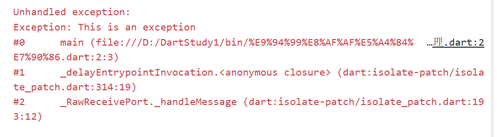译文:你的Dart代码可以抛出和捕获异常。异常是指发生了意外的错误。如果没有捕获异常,抛出异常的isolate将被挂起,通常情况下,isolate及其程序将终止。