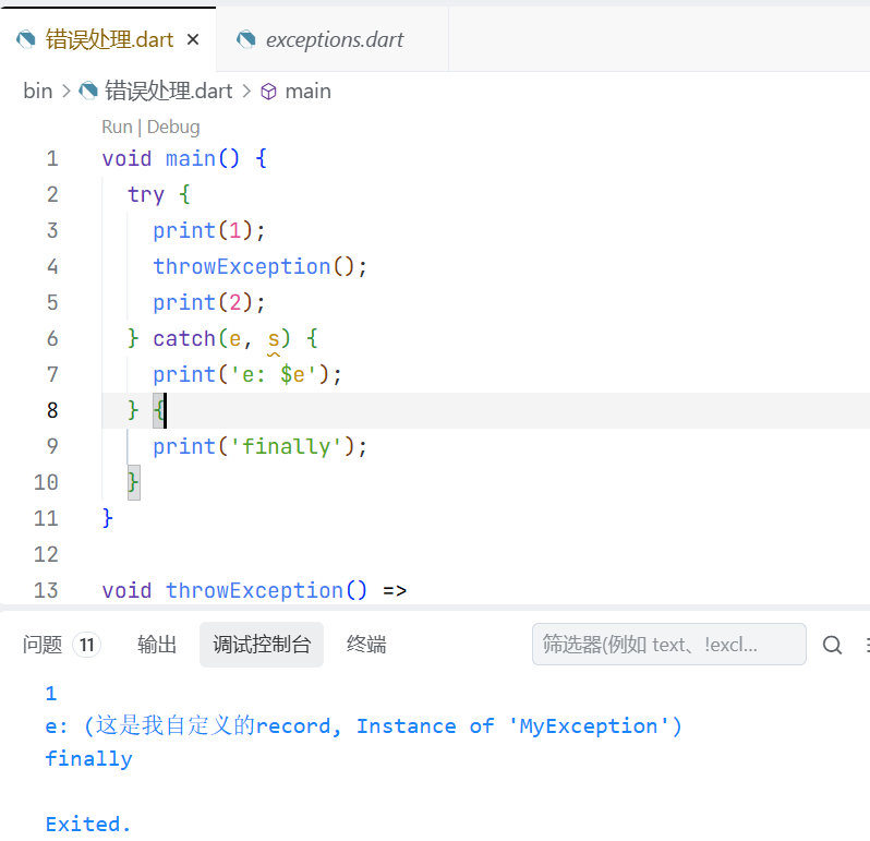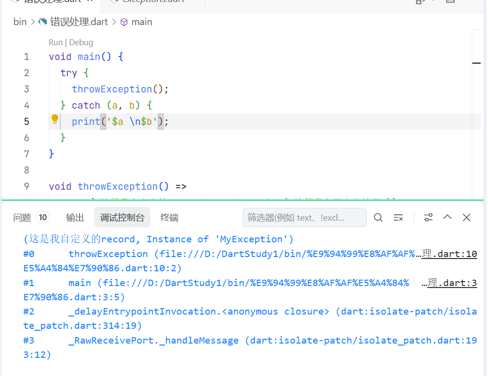 throw ("这是一个records", MyException("这是我自定义的对象"));