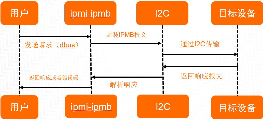 phosphor-ipmi-ipmb发送请求,包含目标设备地址、命令内容等信息; - 组件将请求封装为标准 IPMB 报文,通过 I2C 总线传输到目标设备;