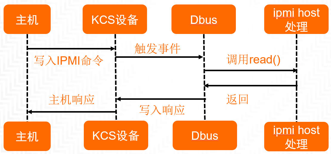 /dev/目录下生成对应的设备节点(如/dev/ipmi-kcs3); - 主机通过写入 KCS 设备节点发送 IPMI 命令,触发 BMC 端的事件循环;
