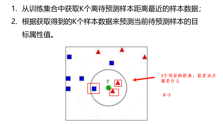 # 2、根据获取得到的K个样本数据来预测当前待预测样本的目标属性值