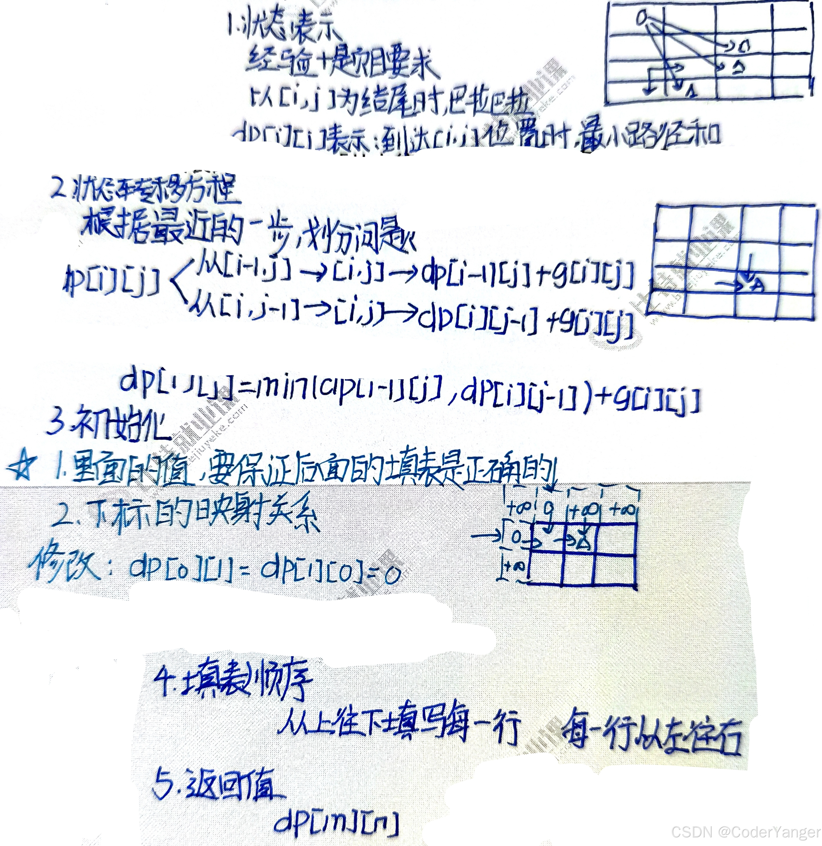 dp[i][j]=Math.min(dp[i-1][j],dp[i][j-1])+grid[i-1][j-1];