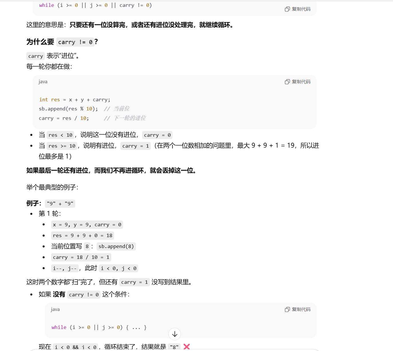carry=res/10;//得到进位
