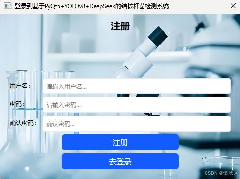 基于 PyQt5 + YOLOv8 + DeepSeek 的结核杆菌检测系统"旨在解决传统结核杆菌识别流程中效率低、依赖经验强与误判率较高等问题。结核病长期以来是全球范围内的重大公共卫生挑战,其临床检测多依赖人工显微镜阅片,流程繁琐、主观性强,在基层医疗机构尤为突出。随着深度学习与医学图像分析技术的发展,利用 YOLOv8 进行快速目标检测能够在显微镜图像中高效定位并识别结核杆菌,实现秒级推理与高召回率,从而显著提升检测效率与稳定性。同时引入 DeepSeek 等大模型能力,可在数据预处理、特征表达、模型优化等环节提供更强的语义理解与智能分析,使系统在小样本、复杂背景和噪声干扰条件下仍具备鲁棒性。PyQt5 作为桌面端图形界面框架,为临床人员提供直观、易操作的可视化界面,使算法能力真正转化为可用的应用工具。三者结合不仅提高了检测过程的自动化程度,也使 AI 辅助诊断在基层环境中具有可部署、可扩展、易使用的优势。该系统的研究对推动结核病筛查智能化、缩短诊断周期、降低医务人员负担、提升资源受限地区的公共卫生能力具有重要意义,同时为显微图像智能识别领域提供了可复用的技术路径与系统方案。
