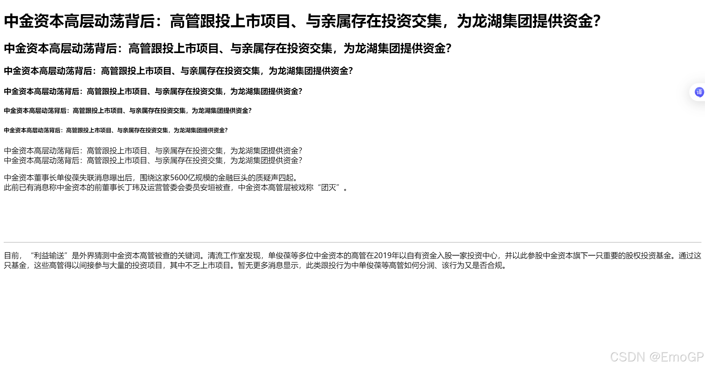 <h1>中金资本高层动荡背后:高管跟投上市项目、与亲属存在投资交集,为龙湖集团提供资金?</h1>