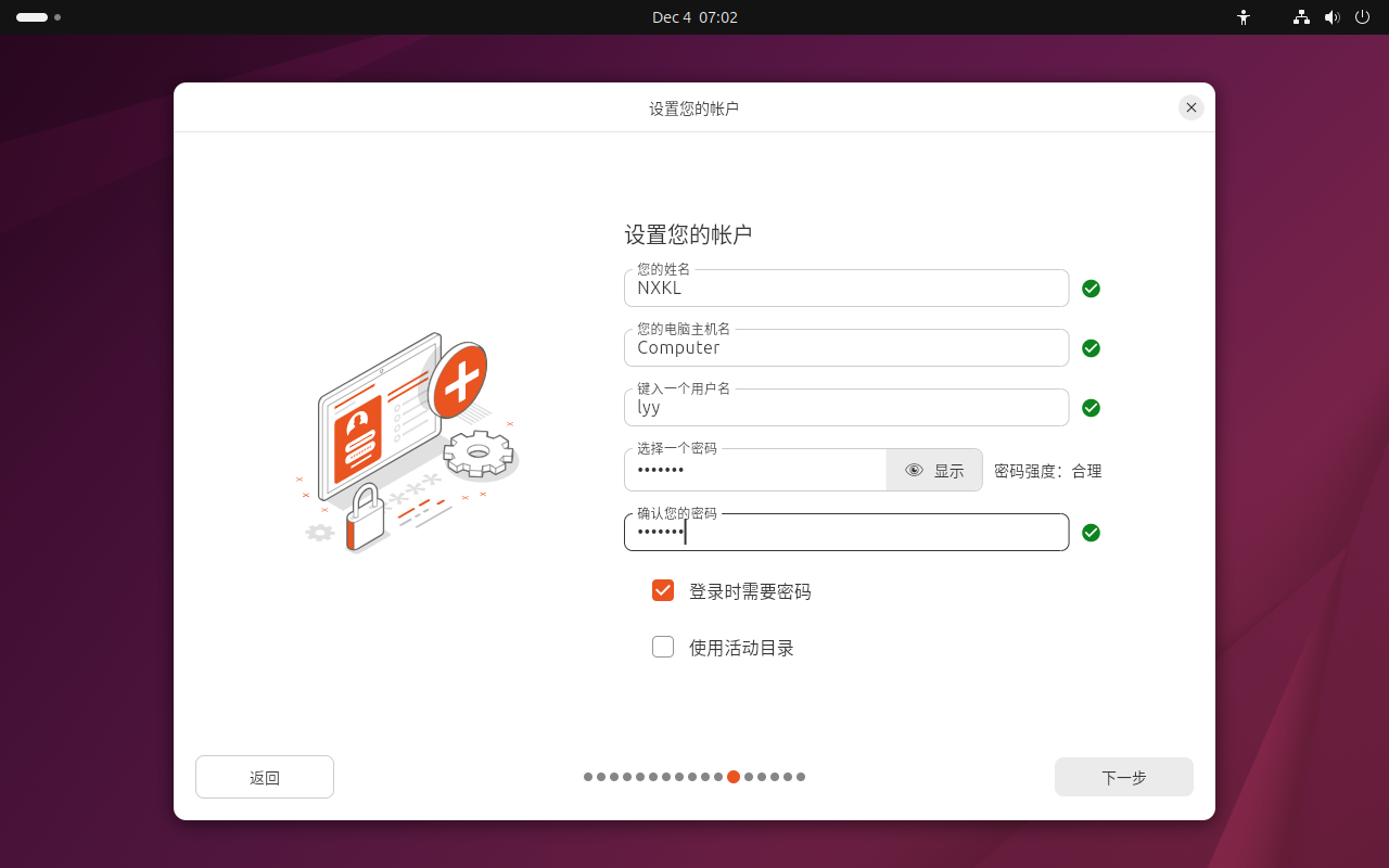 然后在这里设置电脑名和用户名,用户名这里一定要是全小写,用户名和密码就是登录账户和密码