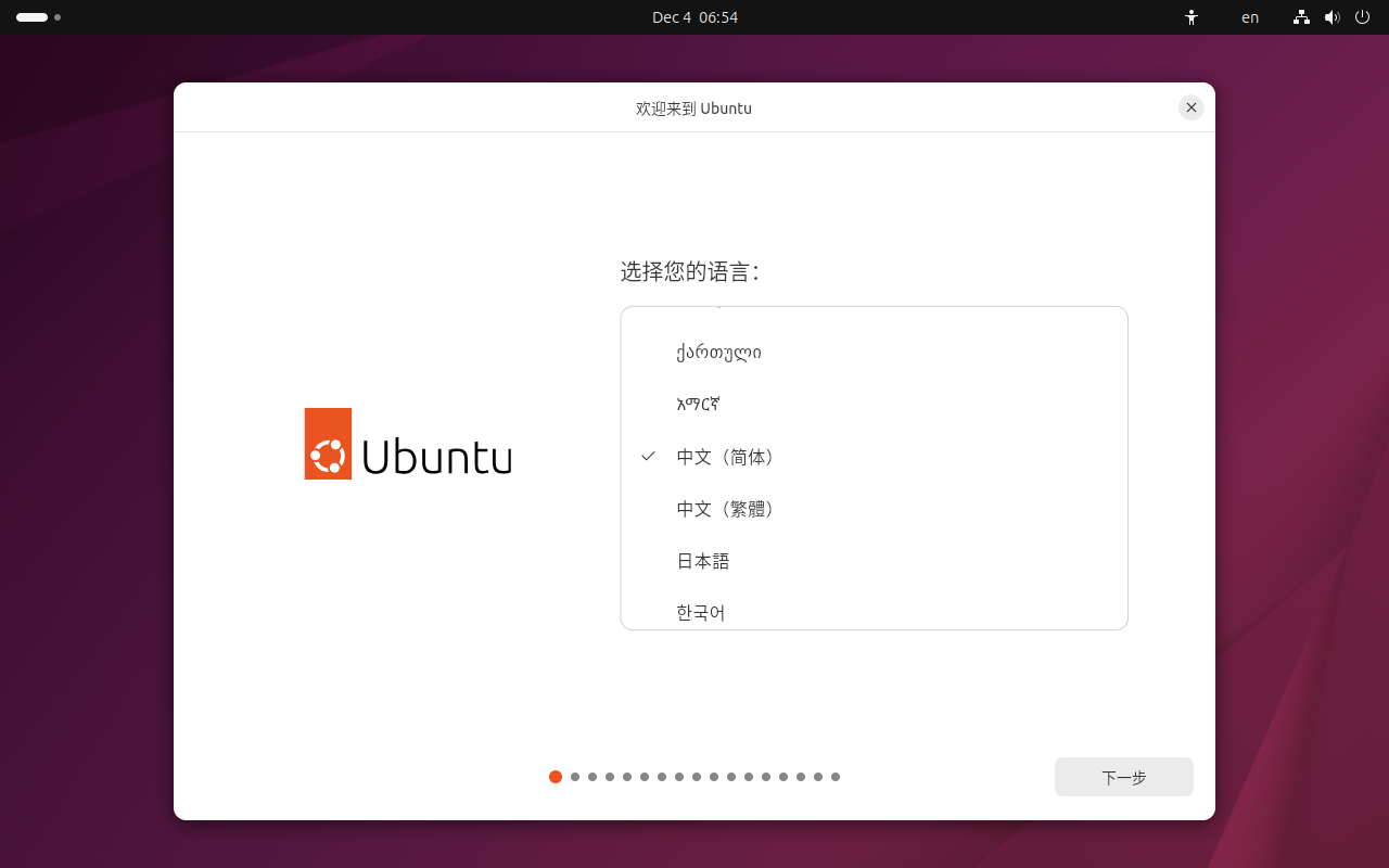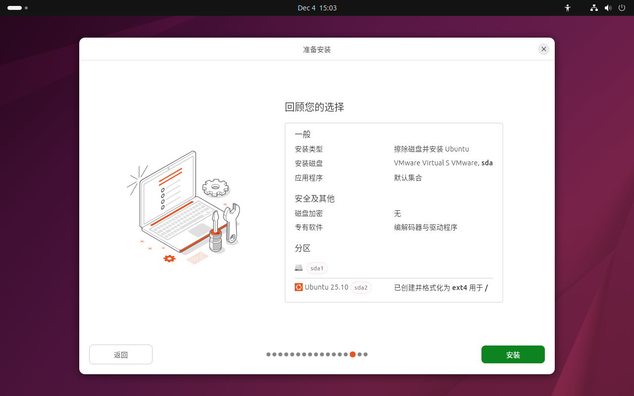 省略Vmware workstation安装及虚拟机环境设置只介绍Ubuntu 25.10桌面版安装过程和简单的配置