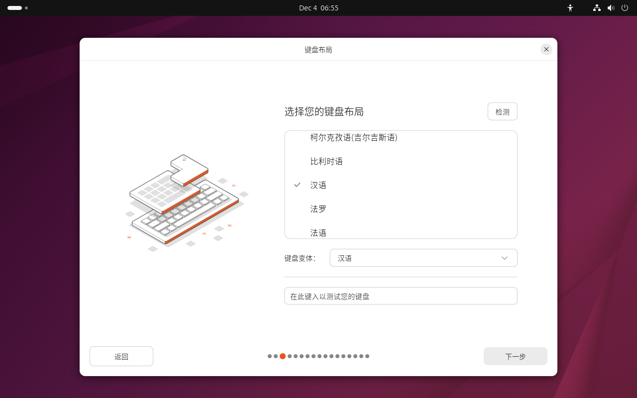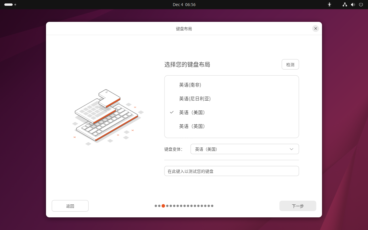 按常规习惯选美式英语键盘,也可以选默认的汉语键盘