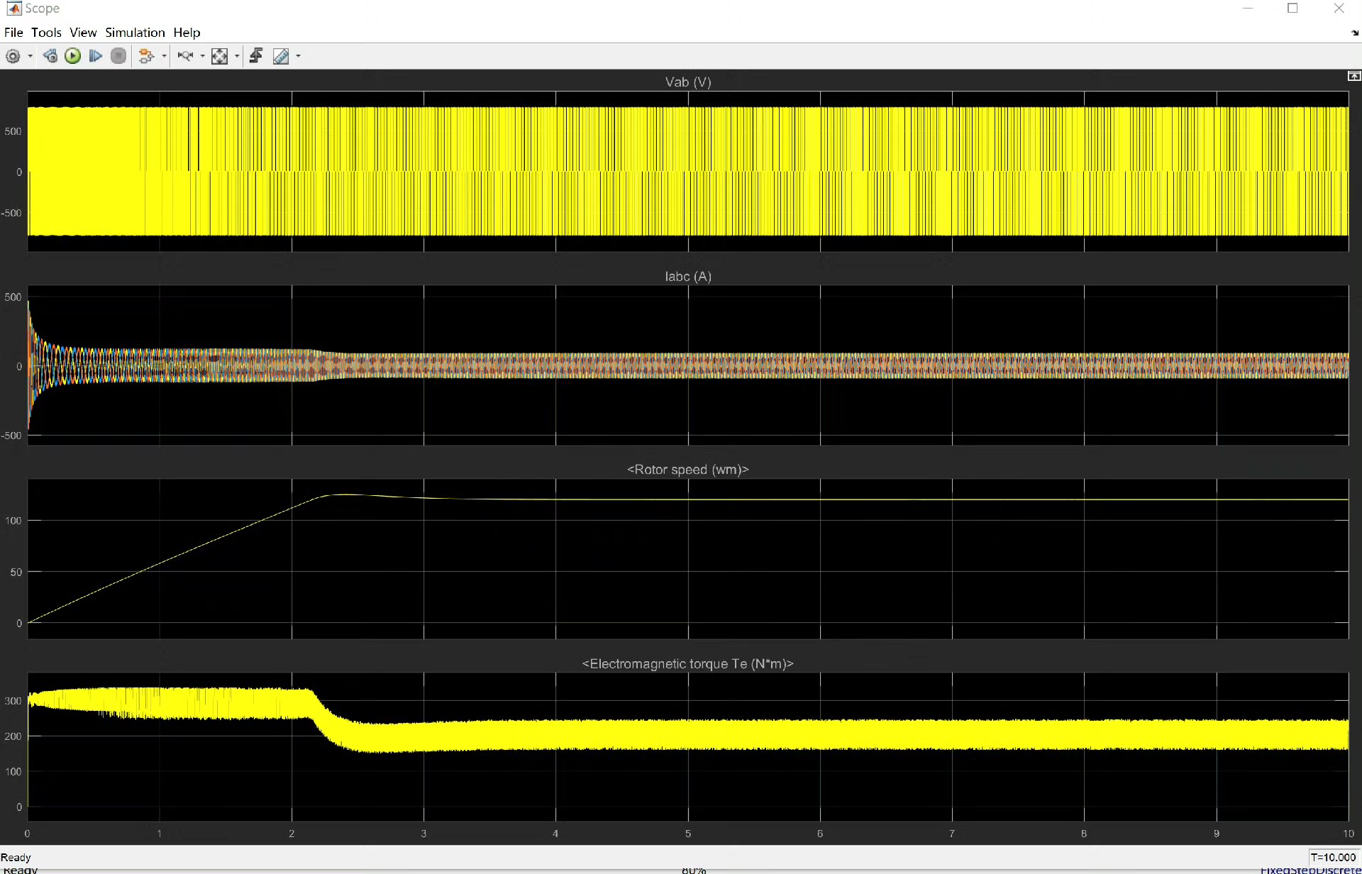 经过一番折腾,仿真跑起来啦,我们得到了异步电动机矢量控制的一系列结果。从结果中能看到异步电动机矢量控制的特点。比如说,它能实现对异步电动机的高性能控制,就像直流电机一样,能够快速准确地响应控制指令,实现转速和转矩的精准控制。