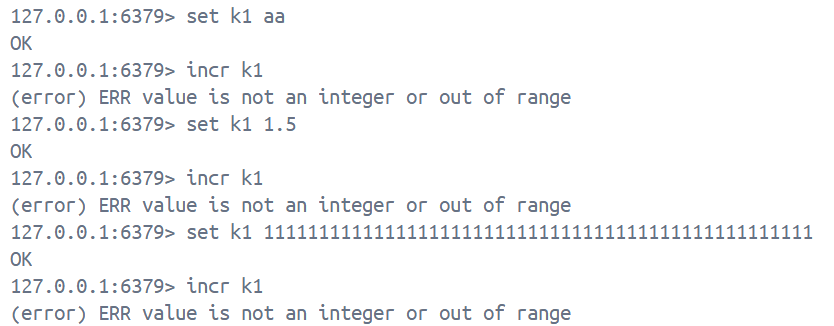 1. incr key是让key对应的value值自增1, 返回值是自增后的值, 这里需要注意value值必须是整数类型, 且不能超过64个比特位, 否则就会报错