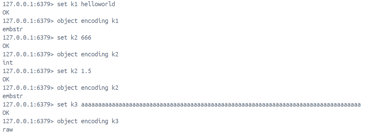 2. embstr 压缩字符串, 字符串长度较短时, 用该编码, 同时当存储的数据是小数时, 也是用改编码方式, 这就意味着进行小数的算术运算的时候, 要先转化为小数完成运算后再转化为压缩字符串