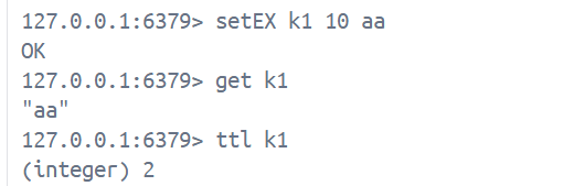 1. 上方命令的作用是既设置key和value又设置过期时间,同时设置更新条件, ex 表示秒级, px表示毫秒级, nx表示如果key不存在则可以设置, 创建新的键值对, 并设置过期时间(如果设置了过期时间的话), key存在则不可设置, 返回nil, xx表示如果key存在则不可以设置, 返回nil, key存在则可以设置, 并更新key中的value和过期时间(如果设置了过期时间的话)