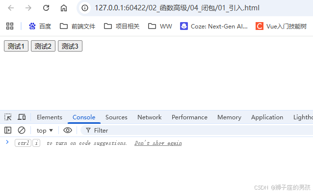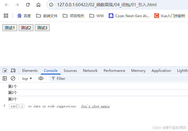 // 进入页面依次点击测试1、测试2、测试3后的控制台:
