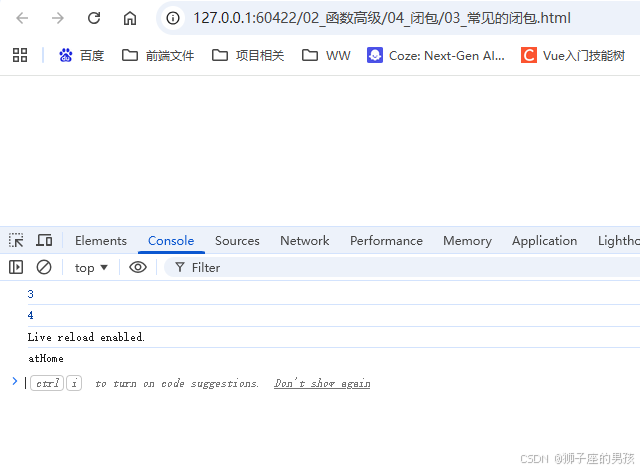 function fn2() {// 执行函数定义就会产生闭包(不用调用内部函数,但由于语法(2025.08.11)等问题,现在已经只能调用才能看见闭包现象);