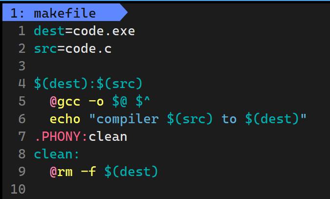 非常直观的用法吧,这时候我们只要将dest和src指向的名称改为目标文件和依赖文件就完成makefile的编写咯。