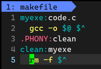 其中第一行':'后的部分称为依赖文件列表,可以有多个文件,按照空格分割,如:code.c test.c love.c