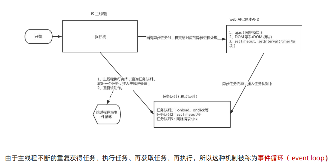- 事件循环(event loop)负责将任务队列中的任务放到主线程执行