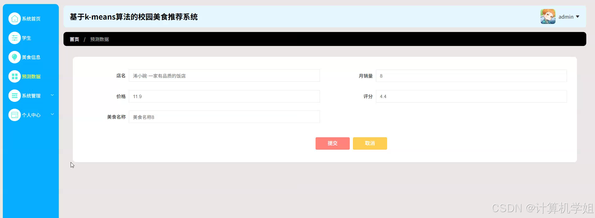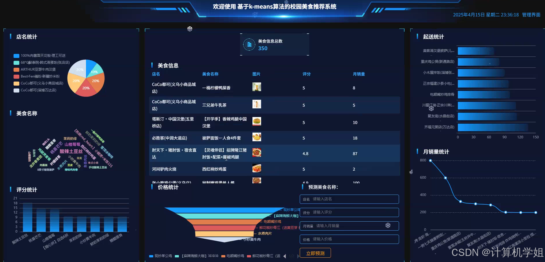 【2026最新】基于Python+Django+Vue+MySQL+k-means算法的校园美食推荐系统