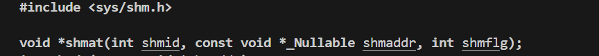 返回值:虚拟地址,就是共享内存成功挂接的段空间的起始虚拟地址,若失败就返回-1