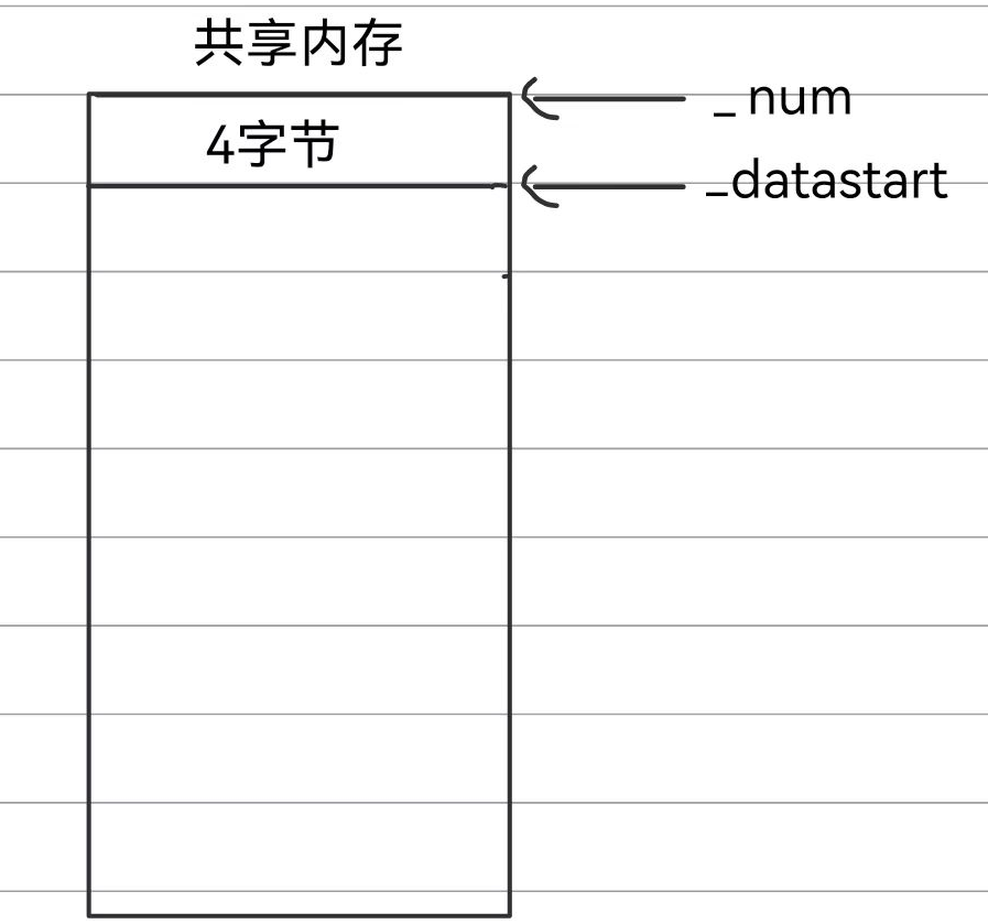 cpp_num = (int *)_start_add; _datastart = (char *)_start_add + sizeof(int);让_num的地址设置到共享内存的开始处,将初始值设置为0要放到另一个接口中(只有最开始的发送端才可以设置),让_datastart的地址设置在_num后面