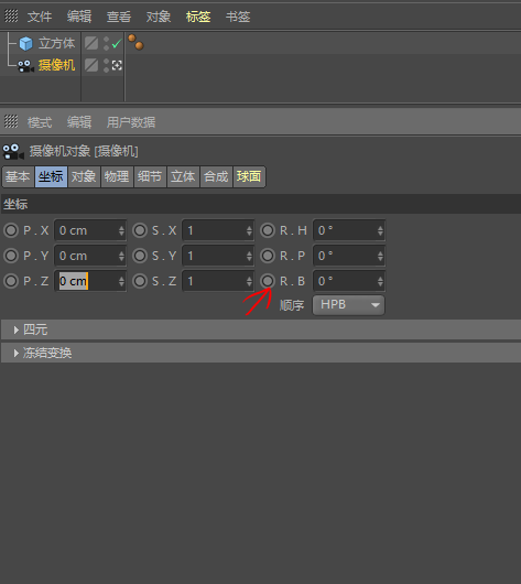 具体位置如下:模式-摄像机-坐标-第三行的R.B改为0