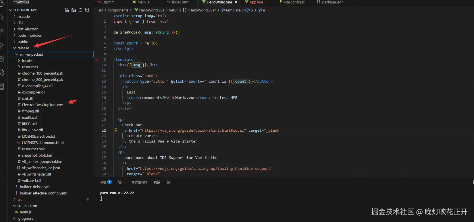 在当前目录下创建创建 src-electron文件夹,在src-electron文件夹下创建main.js文件。输入以下内容