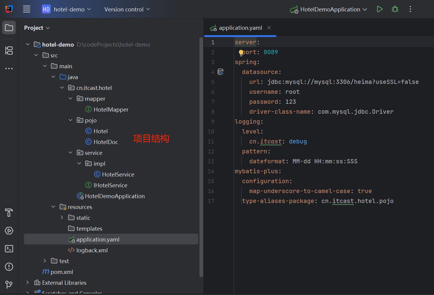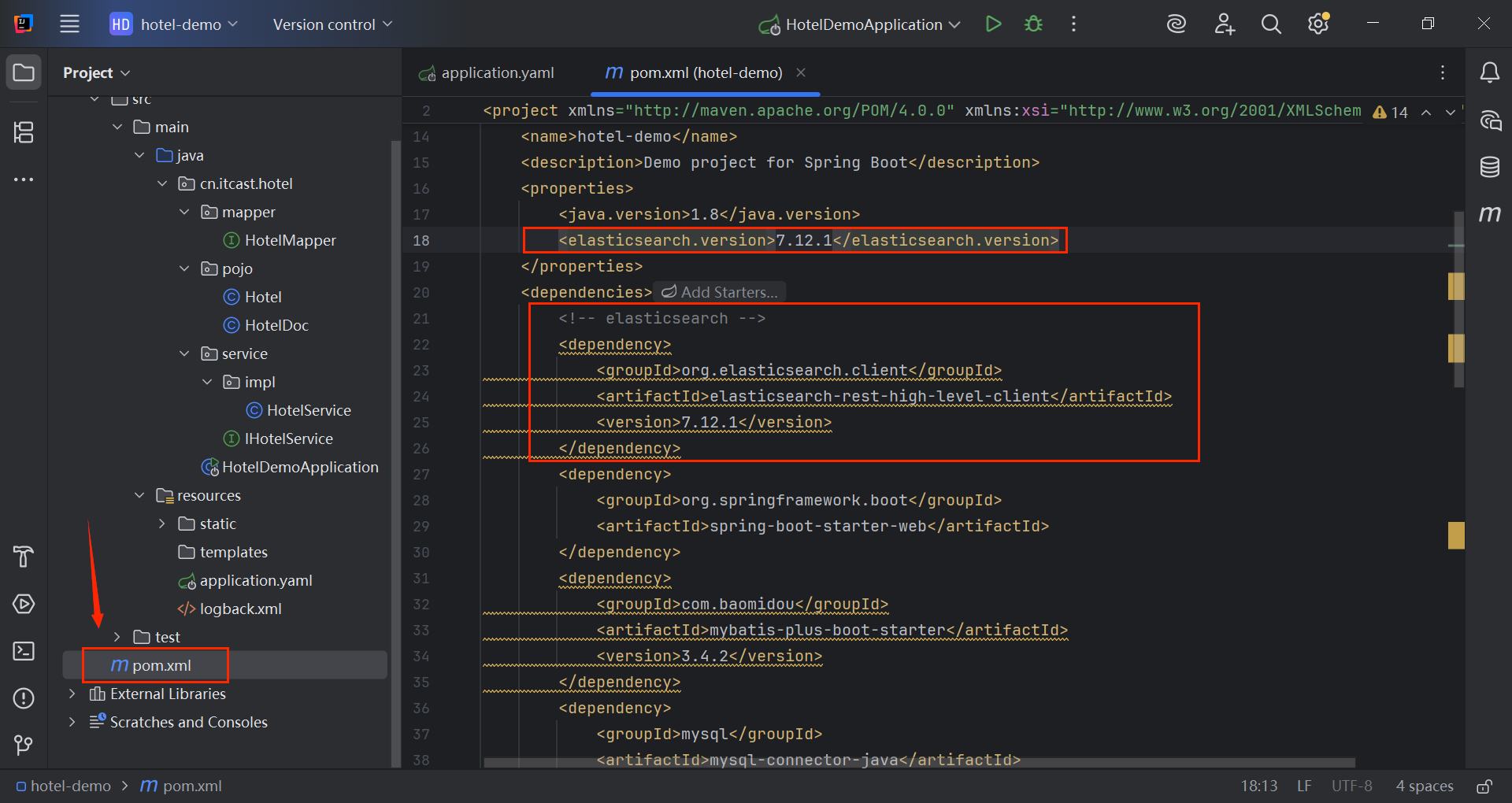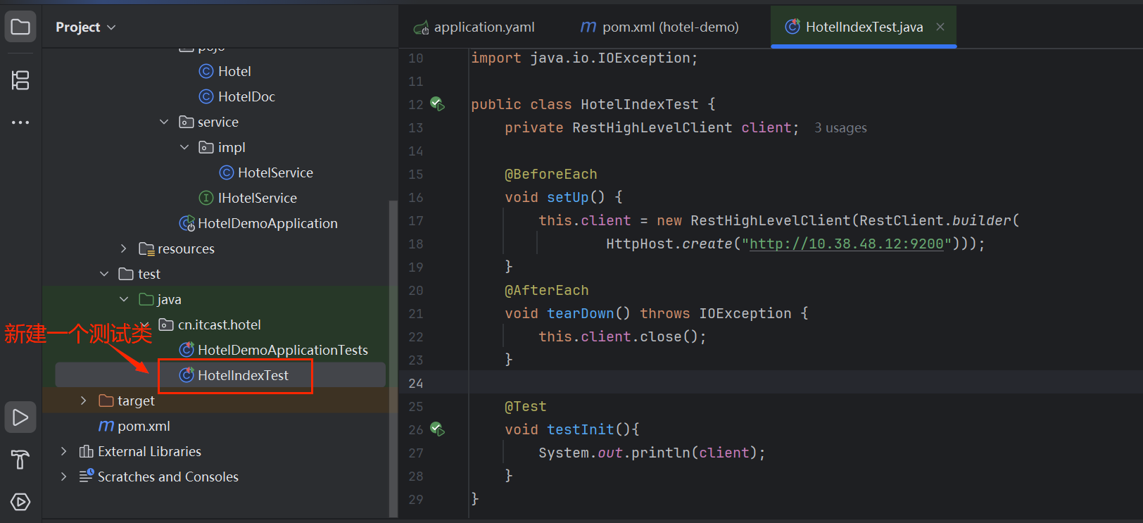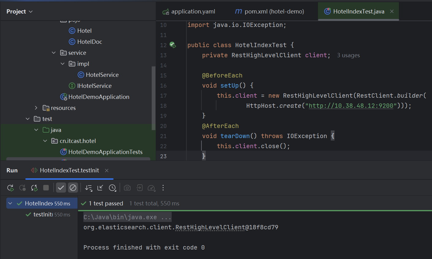 还需要注意一个问题,前面在elastic中创建Hotel索引库时,里面的字段和MySQL数据库中表的字段不完全一致,longitude和latitude合成了location。为了方便,可以再建议一个HotelDoc.java来进行转换: